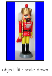 - object-fit : contain처럼 원본 크기를 지정된 너비와 높이에 잘리지 않게 스케일을 줄여서 보여줍니다.