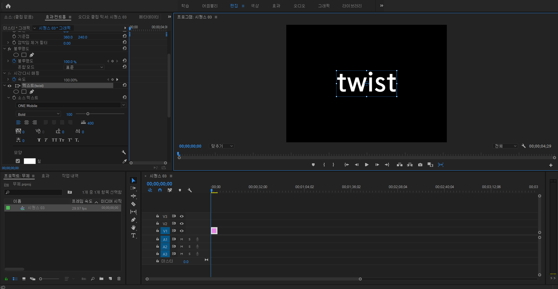 결과는 타임라인 플레이 시 화면에 twist 글자가 꿀렁이는 걸 볼 수 있습니다.