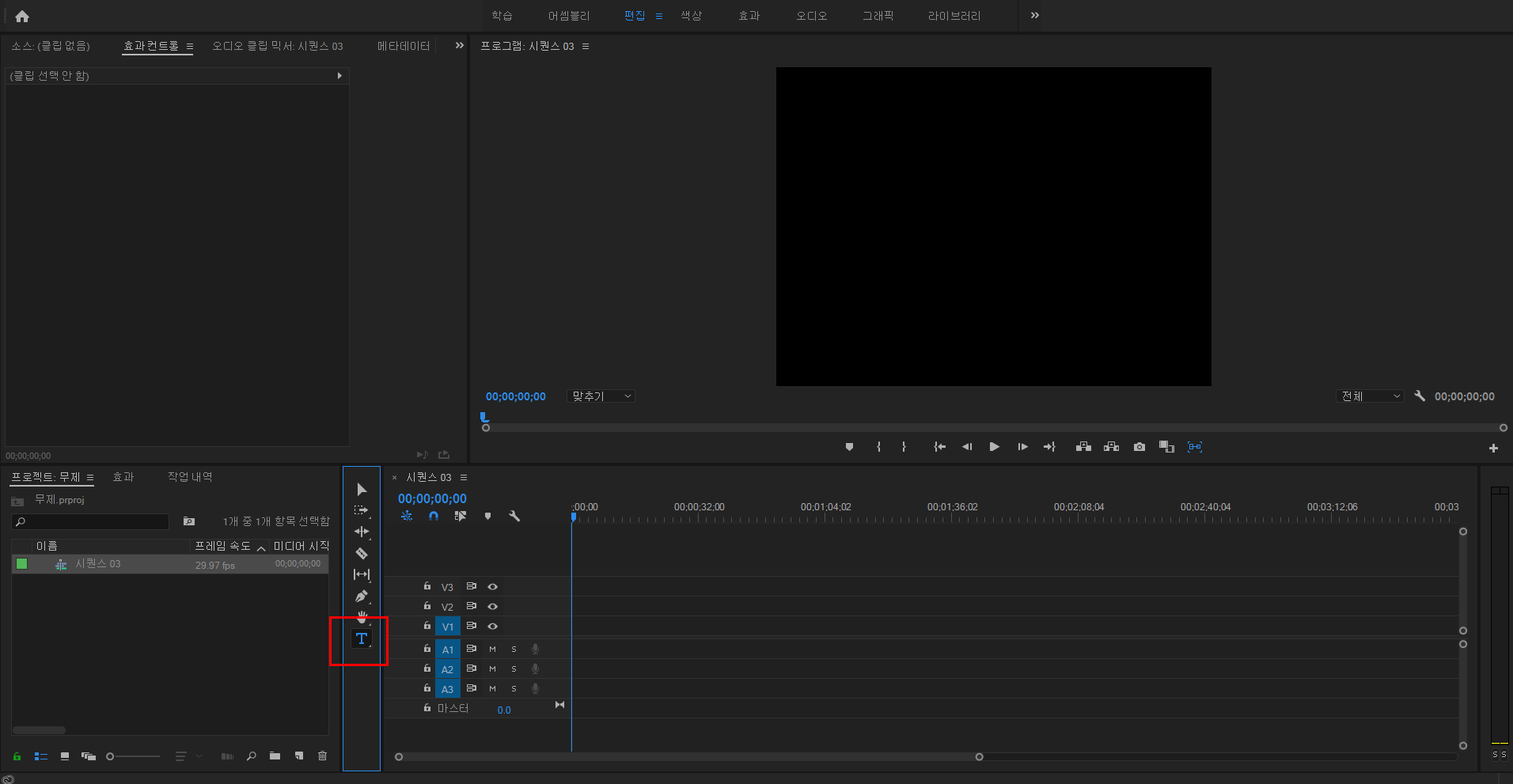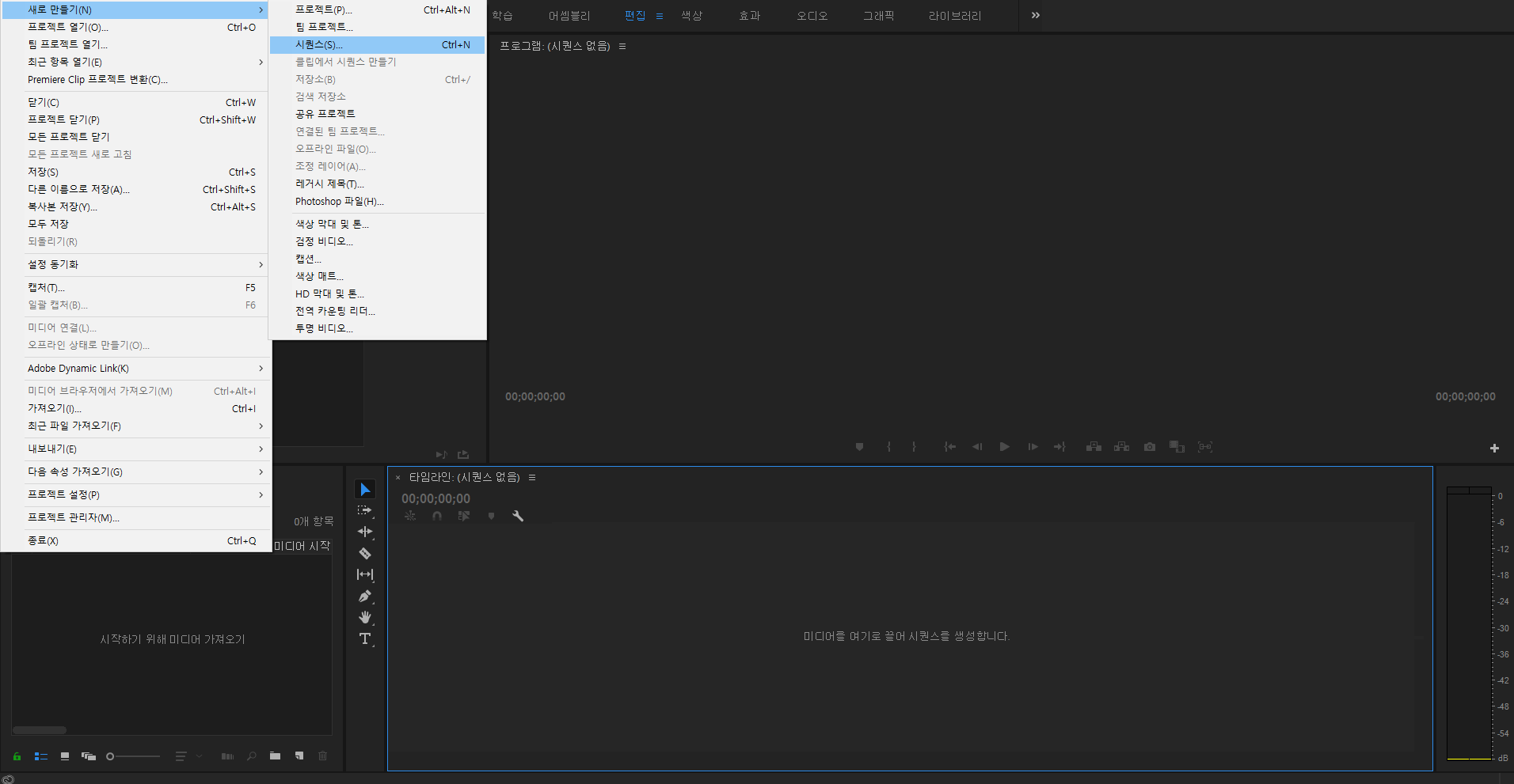 한글 : [파일] - [새로 만들기] - [시퀀스]