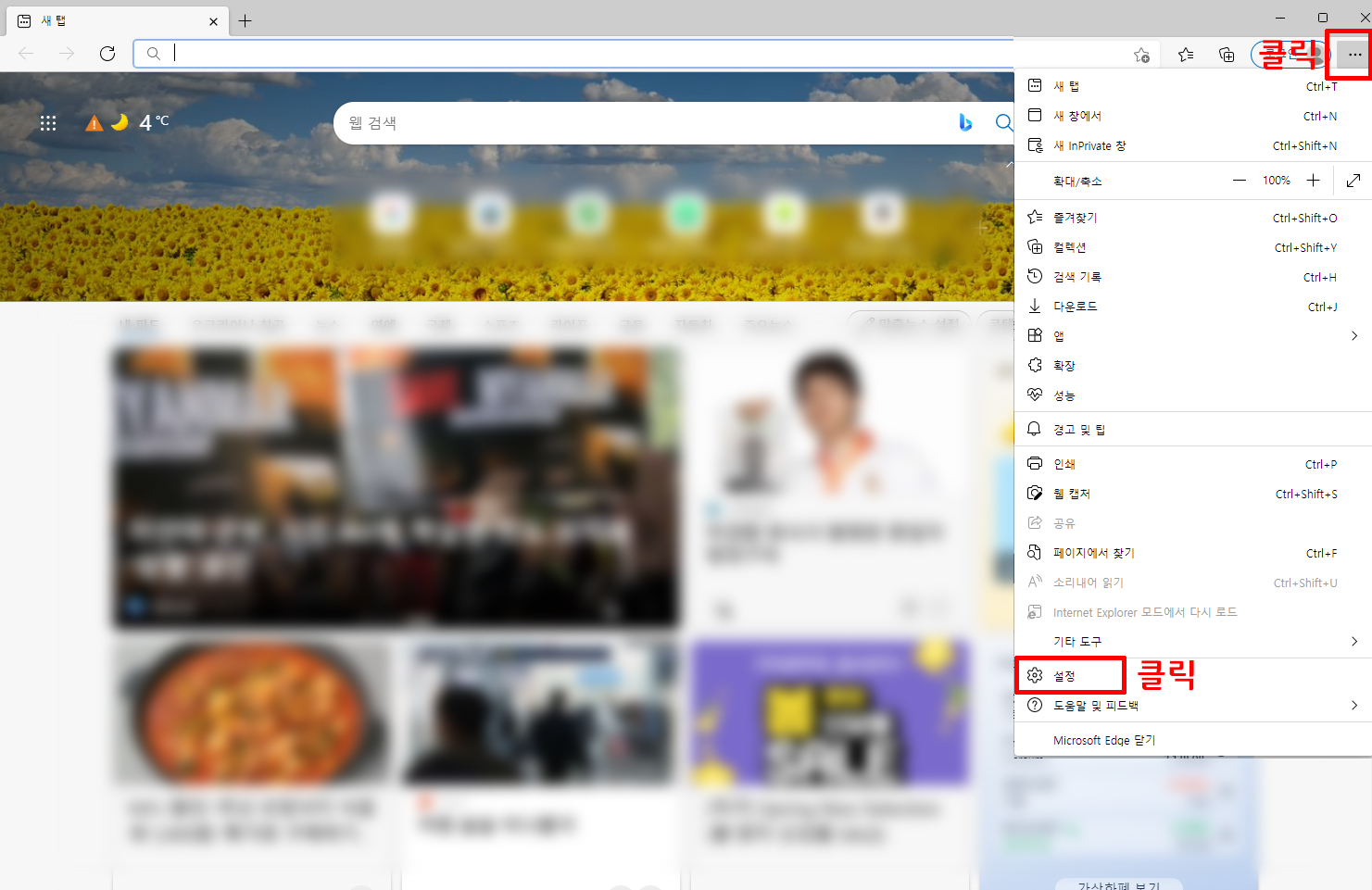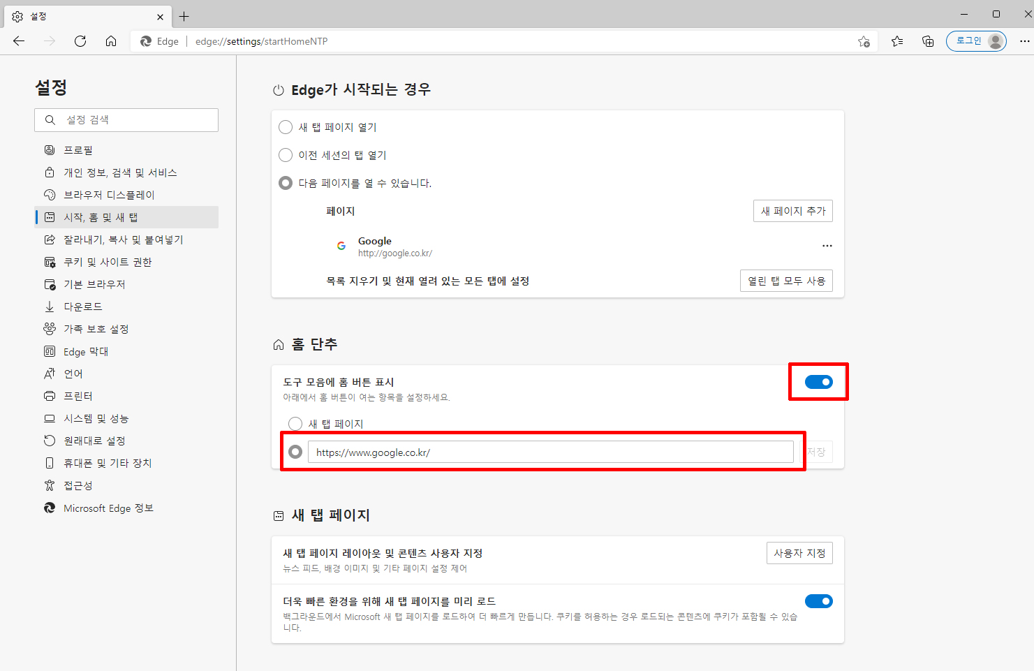 마이크로 소프트 엣지(MS Edge) 브라우저 시작 페이지 설정하기 1편