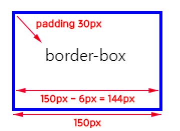 2. 전체 150px에서 보더 6px (좌, 우 3px + 3px)를 뺀 영역 144px이 파란색 테두리 안쪽 영역이다.